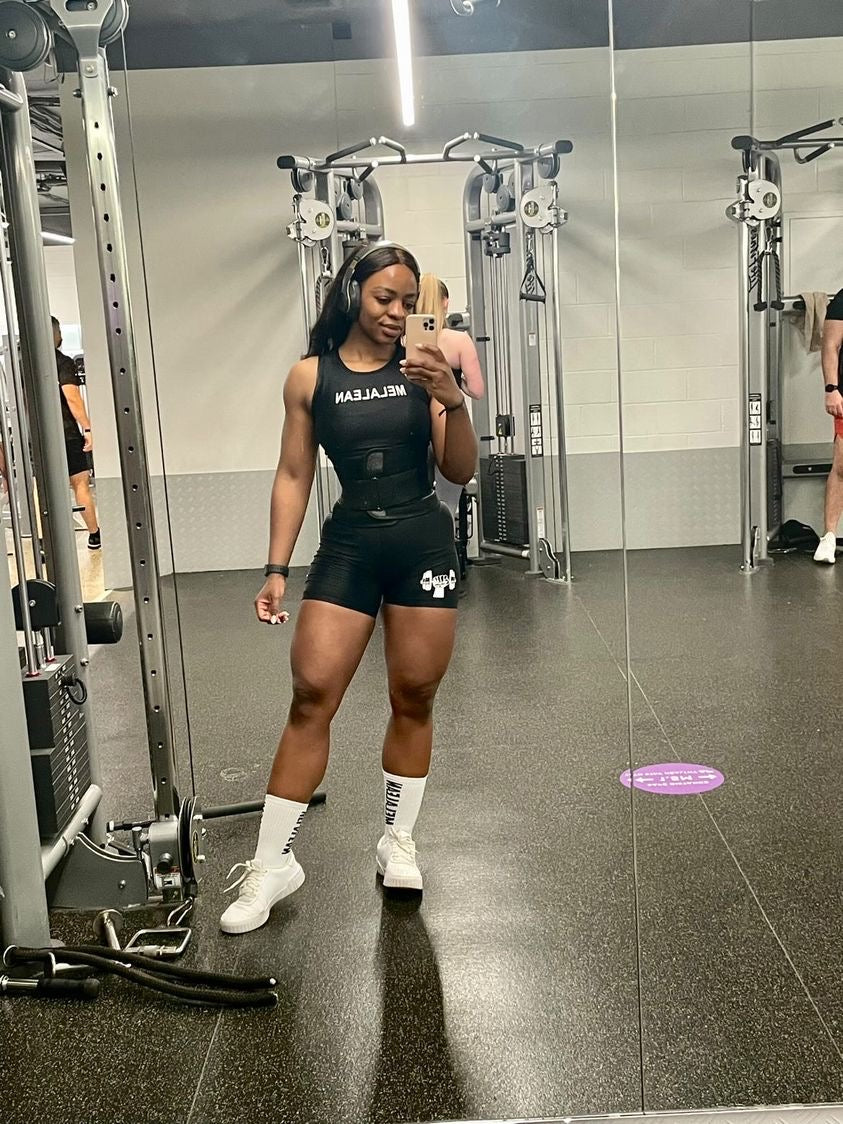 - Melalean logo on waistband