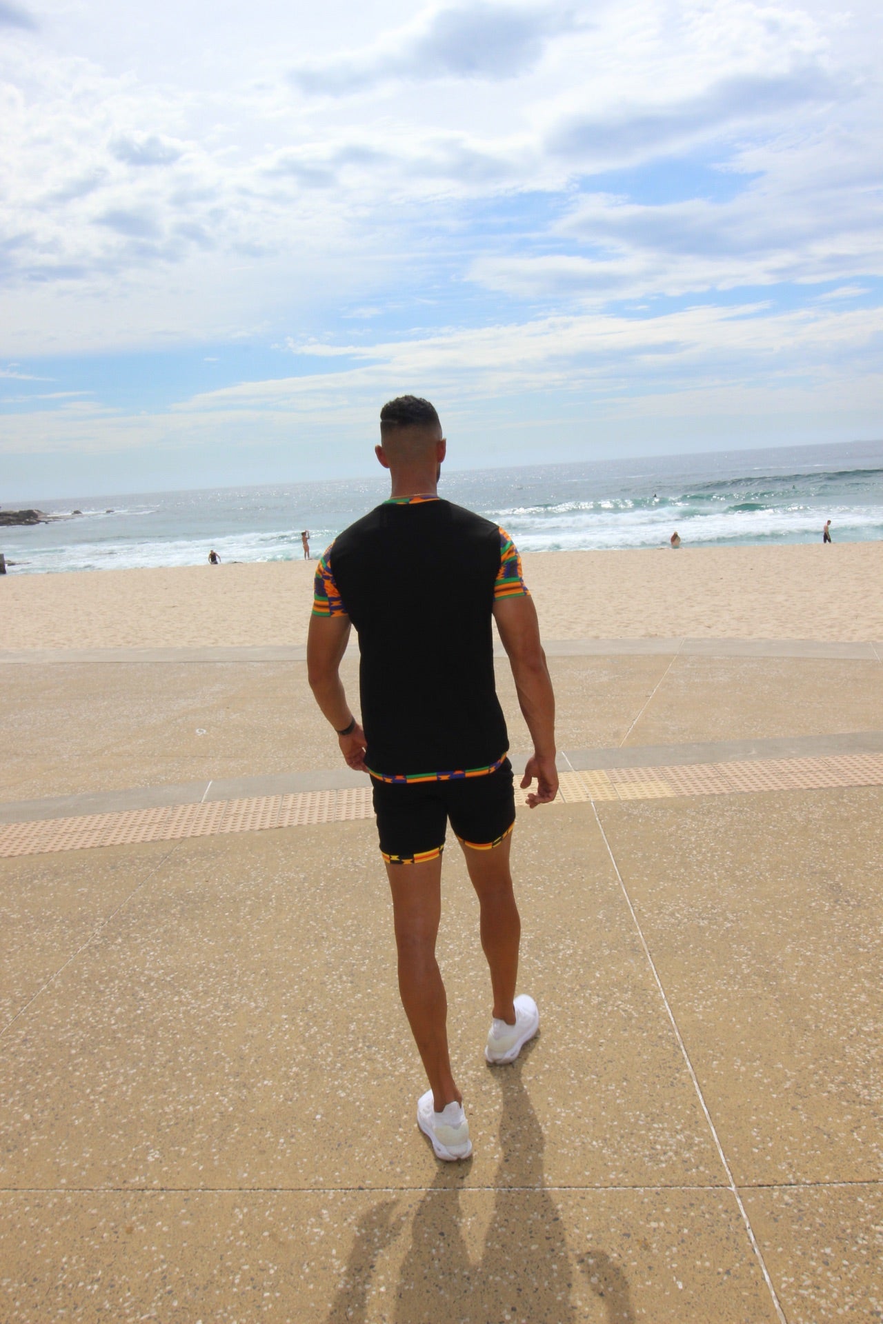 The Kente Wakanda Vibe print shirt is here to support you, doing what you do best: training hard or looking good to rep a little something for the culture. Understated but fully functional, this shirt is built with a regular fit & spandex sleeves.